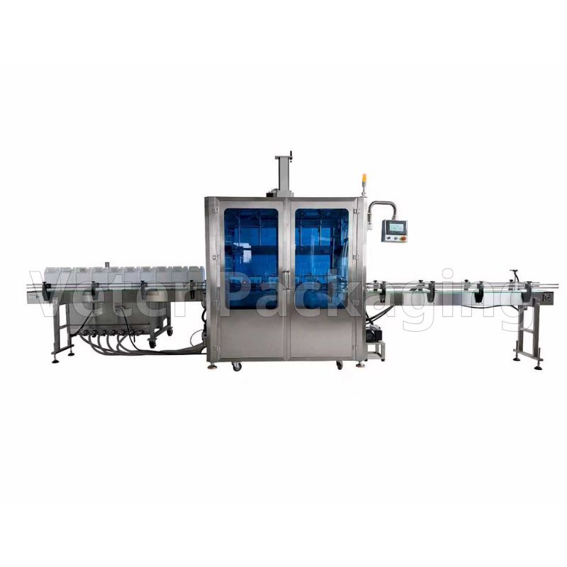 Αυτόματο γεμιστικό μηχάνημα συσκευασίας ημιπαχύρευστων και παχύρρευστων προϊόντων με γραναζωτή αντλία (gear pump) και σέρβο κινητήρα (servo motor) εξασφαλίζοντας μεγαλύτερη ακρίβεια γεμίσματος. Το μηχάνημα είναι κατασκευασμένο από ανοξείδωτο ατσάλι, με μεταφορική ταινία 4 μέτρων. Ιδανικό για προϊόντα (μέλι, βούτυρα ξηρών καρπών, σάλτσες, ελαιόλαδο, σπορέλαια, πάστα ελιάς, dressings, απορρυπαντικά, προϊόντα καθημερινής φροντίδας, σαμπουάν, αφρόλουτρα, καθαριστικά, χημικά, κτλ) μεγάλων συσκευασιών (μπιτόνια / κουβάδες) επαγγελματικής χρήσης.